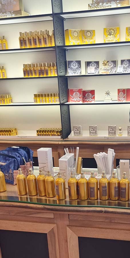 Wir besuchten auch die Parfümerie Fragonard, wo an den verschiedenen Theken alle bezaubernden Produkte präsentiert werden: Parfüme, Eau de Toilette, Seifen, Kerzen, Diffusoren, aber auch Kosmetika, Duschgels und Geschenkboxen…